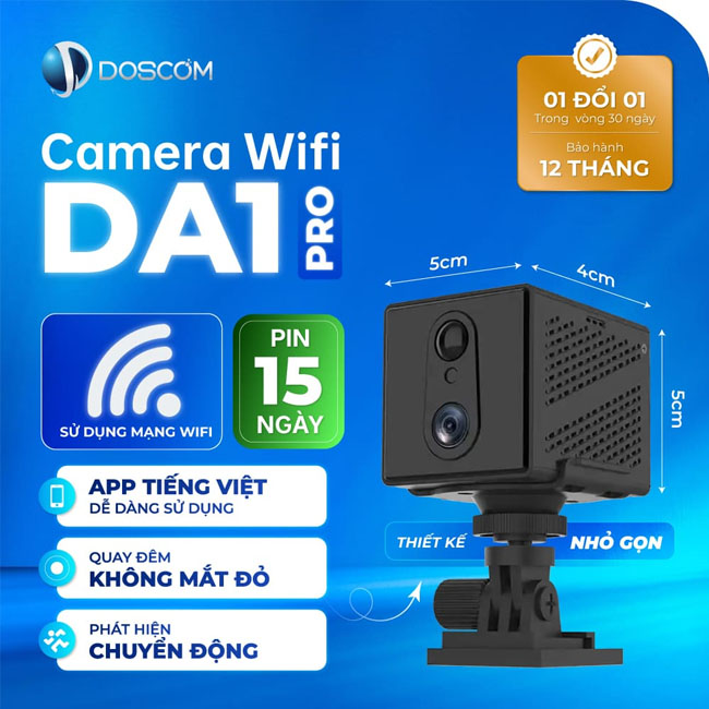 Trải nghiệm sự thuận tiện với Camera Mini 4G DA1 PRO DOSCOM – Kết nối 4G mà không cần Wifi hay dây mạng. Bạn sẽ an tâm với cảnh báo trên điện thoại khi có chuyển động, hỗ trợ hồng ngoại ẩn và khả năng quay đêm mà không phát ra mắt đỏ.