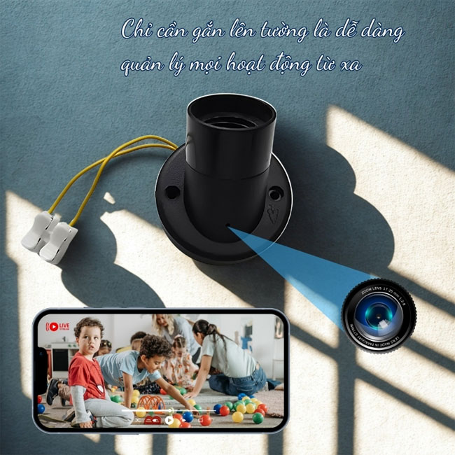 Camera mini chui đèn là thiết bị giám sát cao cấp kết hợp giữa công nghệ hiện đại và thiết kế ngụy trang thông minh, giúp bạn quản lý nhà cửa, tài sản, con cái hay người giúp việc từ xa một cách âm thầm và hiệu quả. Camera mini chui đèn được thiết kế cực kỳ kín đáo, có thể quay video với độ phân giải lên đến 4K siêu nét, xem online trực tiếp từ xa qua điện thoại. Giúp bạn ghi lại mọi sự vật, sự việc một cách hoàn hảo nhất mà khó ai có thể nhận ra.